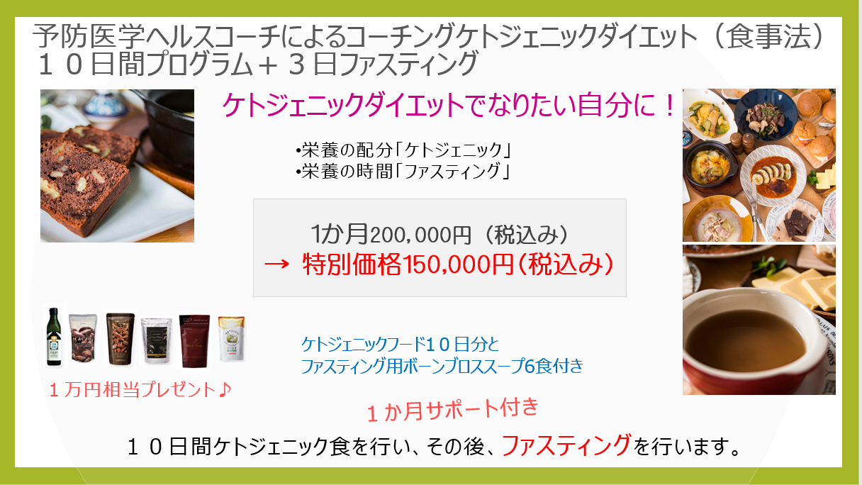 予防医学ヘルスコーチによるケトジェニックダイエット(食事法) 13日間プログラム